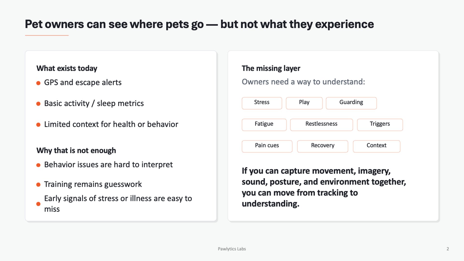 At PawlyticsLabs, we research ways to better connect with our pets through AI-enabled insights.